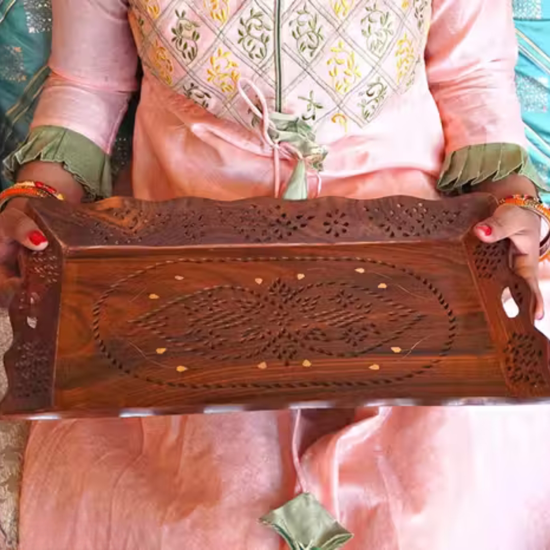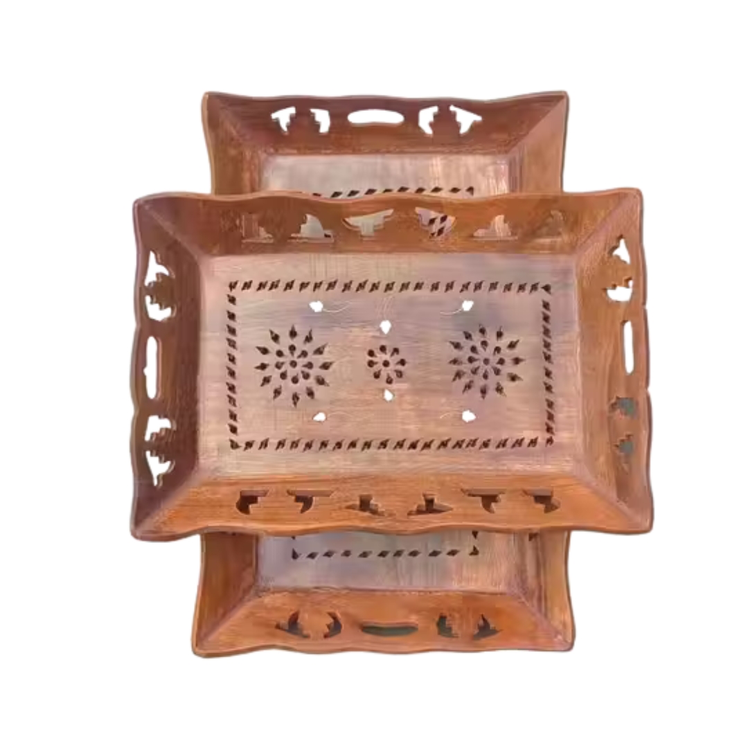 This Wooden Serving Tray Set of 2 beautifully combines utility and aesthetics — making every serving moment special and stylish.